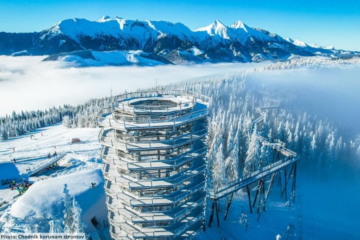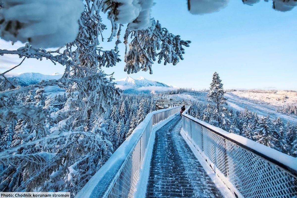 Experience Slovakia Treetop Walk in winter when snow transforms everything into a magical wonderland. The 40-meter observation tower offers breathtaking views of snow-covered peaks and frosty forests.